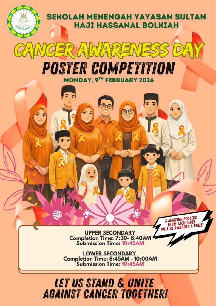 Kindly be informed that Yayasan SHHB Secondary School will be organizing a Poster Competition in conjunction of World Cancer Awareness Day.
